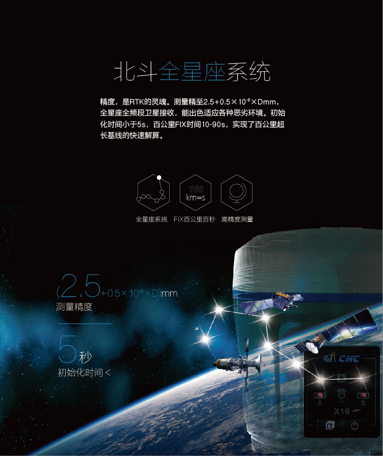 高程精度:±(5+0.5×10-6×D) mmRTK精度