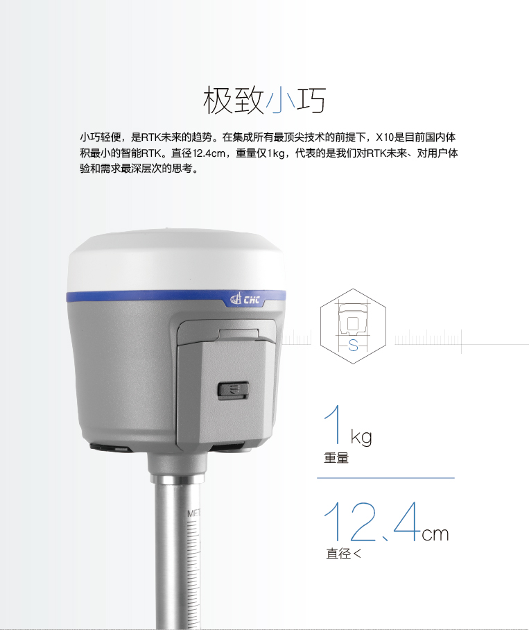 華測(cè)X10 智能RTK,是RTK領(lǐng)域內(nèi)的一次大膽的進(jìn)化。它精致小巧但大有可為,快速精準(zhǔn)的測(cè)量,堅(jiān)固抗摔的材質(zhì),持久耐用的續(xù)航,和智能強(qiáng)悍的配置,為用戶帶來全新的測(cè)量體驗(yàn)。